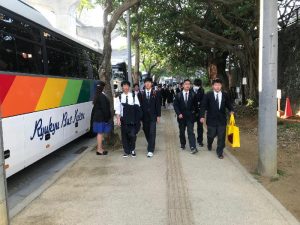 予定通り、最後の見学地である識名園に出発します。天気は快晴です。