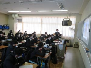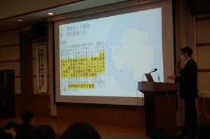 2月17日(水)に1年生を対象としたサイエンスフォーラムを実施しました。講師として本校卒業生の和泉智哉先生(第60次南極地域観測隊、現鈴建興業株式会社)をお迎えし、南極での環境保全活動や生活についてお話しいただきました。講演会場での密をさけるため、教室も利用したオンライン講演会となりましたが、活発に質問が飛び交っていました。厳冬期にはマイナス35℃にもなる低温の世界に思いを馳せる楽しい時間となりました。