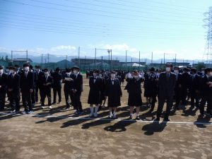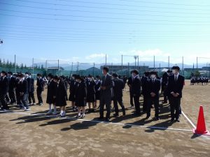 山梨県立甲府南高等学校 > お知らせ > 保護者の皆様へ > 3学年の保護者の皆様へ(第3回定期試験3日目) 2021年10月4日カテゴリー: お知らせ 保護者の皆様へ 3学年の保護者の皆様へ(第3回定期試験3日目) 本日は①世/日・物/生・世/日/物/生、②数学/フード・数学・SS数学、の試験が行われ、試験後の時間帯には卒業アルバム用の人文字写真撮影をグランドで行いました。明日は、①古典、②英語表現Ⅱの試験があり、学年集会・生徒集会の予定です。今週は7日(木)と9日(土)に進駿記述模試がありますが、共通テストとのドッキング判定により出願検討する大事な模試です。なお、8日(金)は駿台立川校から講師をお招きして「共通テスト100日前をむかえて」受験生としての在り方についての講演会を予定しています。