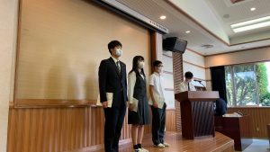 山梨県立甲府南高等学校 > お知らせ > 保護者の皆様へ > 2学年の保護者の皆様へ(生徒会役員認証式) 2021年10月11日カテゴリー: お知らせ 保護者の皆様へ 2学年の保護者の皆様へ(生徒会役員認証式) 10/5(火) 4校時は生徒会役員認証式と引き継ぎ式が行われました。新生徒会長を筆頭に、新副会長2名、新議長3名の認証が行われました。ここからは2年生が生徒会活動の中心となって諸行事を企画・運営していくことになります。放課後早速、生徒会顧問の先生と新役員が今後について打ち合わせを行っていました。南高をよりよく発展させていけるよう、ここからの活躍を期待しています!!(文責 佐藤慶)