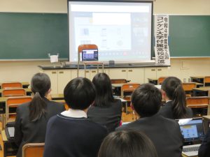 2月13日(月)の放課後に、1年生約20名が参加し、第2回コンケン大学付属高校(タイ)との研究交流会がオンラインで実施されました。今回は、本校から授業で取り組んだ「課題研究」2研究を発表し、相手校からも2研究を紹介してくれました。質問も双方からあり、とても有意義な時間でした。