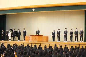 篠原 健 新校長をはじめ13人の新任職員をお迎えし、新任式および令和5年度前期始業式が行われました。始業式では、感染対策をとりながら4年ぶりに校歌を歌いました。また、新しいクラス・担任も発表され、生徒は新たな気持ちで新年度を迎えました。