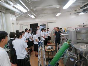 7月26日、8月21日に高校生15名、中学生3名を対象に「ワイン講座」を開講しました。7月26日には石和のモンデ酒造様のワイナリーにお邪魔し、ぶどう畑やワインの出荷の様子、ワインの製造の様子を見学しながら講義を受けました。その後、学校に戻り酵母の発酵実験を行いました。8月21日は山梨大学生命環境部付属ワイン化学研究センターに行き、柳田藤寿教授のもと施設の見学や発酵食品やワインについて講義を受けました。生まれた時に製造したワインが貯蔵してあり、皆さん感動していました。山梨ワイン王国で、充実した「ワイン講座」となりました。