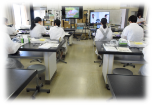 17日は、かずさDNA研究所とオンラインでつなぎ、「謎肉を正体をDNAで解き明かす」実験を行いました。実験については、マイクロピペットの使い方から始まり、電気泳動に対象物をセットする微細な作業まで研究所の方のご指導を受けながら真剣に実験取り組んでいました。普段、利用しないような高価な分析機器を使いながら、一人の研究者のように取り組む姿が印象的でした。