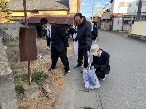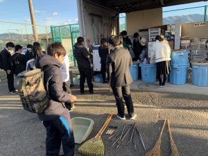 山梨県立甲府南高等学校 > SSH > SSH4部合同清掃を実施しました! 2023年12月25日カテゴリー: SSH SSH4部合同清掃を実施しました! 12月22日(金)に本校の生命科学部、物理宇宙部、数理情報部、物質化学部の4つの部で合同清掃を実施しました。日頃お世話になっている通学路を清掃し、良い年が迎えられそうです。