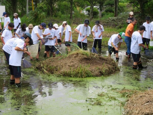 山梨大学名誉教授や山梨県水産技術センターの職員による生物多様性に関する講義を受講し,希少生物を保護する意義を学びました。また,ビオトープで絶滅危惧種のホトケドジョウの保護の現状を視察し,富士湧水の里水族館では山梨県に生息する他の絶滅危惧種の淡水魚等を観察しました。