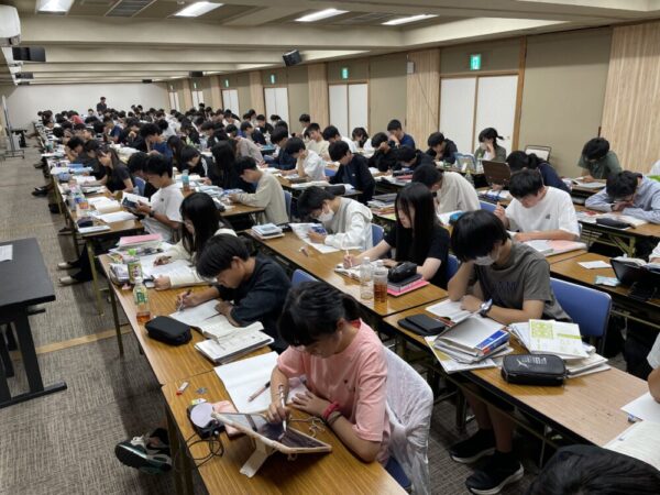 山梨県立甲府南高等学校 > お知らせ > 理数科・理数クラス 宿泊学習会 2025年8月10日カテゴリー: お知らせ 理数科・理数クラス 宿泊学習会 8月6~9日の4日間、1〜3学年の理数科・理数クラス生を対象に宿泊学習会を行いました。今年も昨年と同様、長野県立科町を会場に、標高1500メートルの冷涼な気候の中、4日間で2300分以上の学習に取り組みました。今春南高を卒業した大学生5名をチューターとして招き、各教科の質問に答えてもらったり、進路相談に乗ってもらったりしました。それぞれの目標達成のため、お互い励まし合いながら、学業面でも精神面でも自己を向上させる機会となりました。