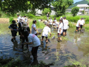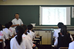 7月30日(水)、7月31日(木)の2日間、1年生40名、公開講座中学生2名、教員2名が参加しました。本校OBの山梨大学名誉教授 宮崎純一先生をお招きし、希少生物の保護と環境保全についての講義を受講いたしました。また、忍野村にバスで出向き、山梨県水産技術センター忍野支所、ホトケドジョウのビオトープを訪れ、実地調査や観察を行い、絶滅の危機に瀕している生物の存在と生物多様性や保全の必要性を学ぶことができました。