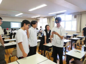 後半は、スクーミーボードを活用して、生徒自身が課題を見つけプログラミングで解決を図る活動を行いました。グループで見つけた課題を、どのようなプログラムで解決ができるかを考え取り組むことができ、9月から実施している課題研究にもつながる有意義な講座となりました。