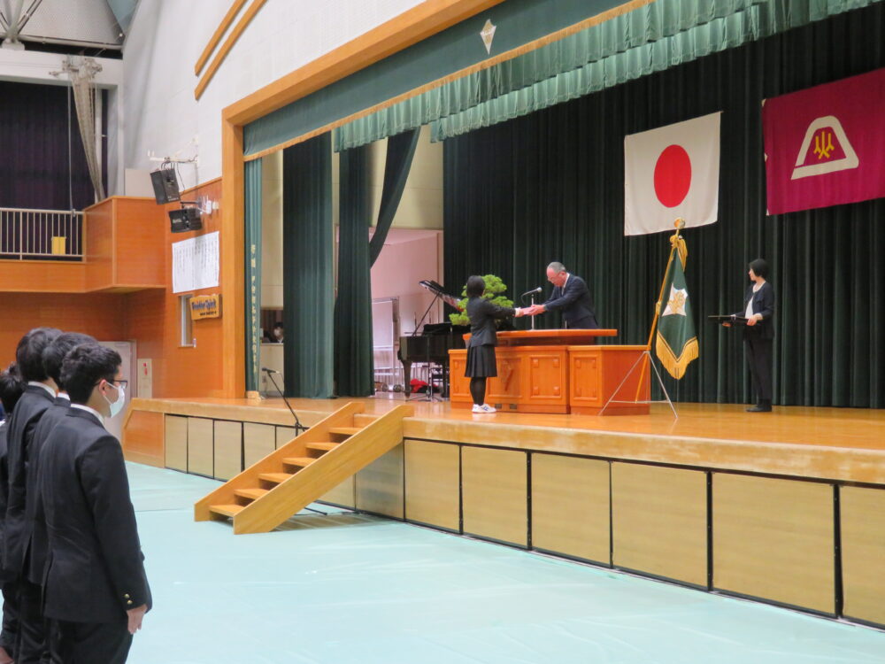 山梨県立甲府南高等学校 > お知らせ > 令和7年度 表彰式 同窓会入会式が行われました 2026年2月27日カテゴリー: お知らせ 令和7年度 表彰式 同窓会入会式が行われました 3月1日の卒業式を前に、生徒会功労賞、外郭団体表彰が行われました。 同時に同窓会入会式が行われました。 また、卒業生から体育館壁面に卒業記念品を贈呈されました。