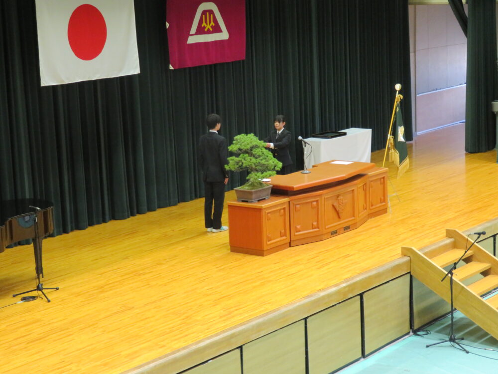 また、卒業生から体育館壁面に卒業記念品を贈呈されました。