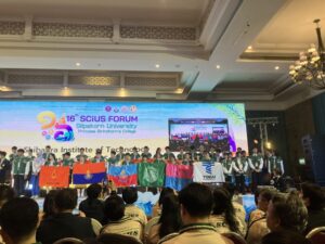 山梨県立甲府南高等学校 > 部活動 > 文化局 > 物質化学部 > 第16回SCIUS学術フォーラム(主催地:タイ)参加 2026年4月28日カテゴリー: お知らせ 文化局 SSH 部活動 物質化学部 第16回SCIUS学術フォーラム(主催地:タイ)参加 4月26日から30日までタイのシルパコーン大学で開催されている「第16回SCIUS学術フォーラム(主催地:タイ)」に物質化学部の代表として3名が参加しています。物質化学部では3年生を中心にスライムを用いて性能を向上させた「スライム太陽電池」の発電の仕組みについて3年間にわたり研究を重ねてきました。フォーラムではこの研究成果についてポスター発表を行いました。昨日は、コンケン大学附属高校の生徒と交流しながら過ごし、プレゼンも先生方に向かって発表、その後英語で質疑応答と頑張っていました。